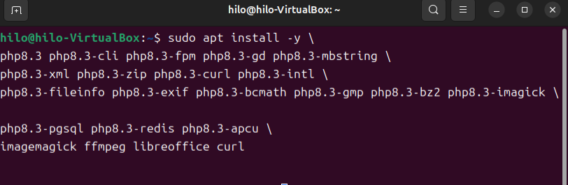 php8.3-fileinfo php8.3-exif php8.3-bcmath php8.3-gmp php8.3-bz2 php8.3-imagick \