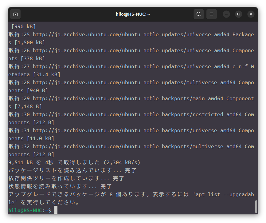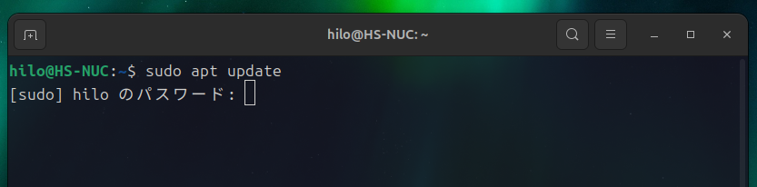 次に以下のコマンドを実行してみましょう。もしパスワードを尋ねられたら先ほどと同じようにUbuntuのパスワードを入力してください。