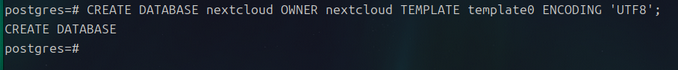 sudo -u postgres psql -d nextcloud -c "GRANT ALL PRIVILEGES ON DATABASE nextcloud TO nextcloud;"