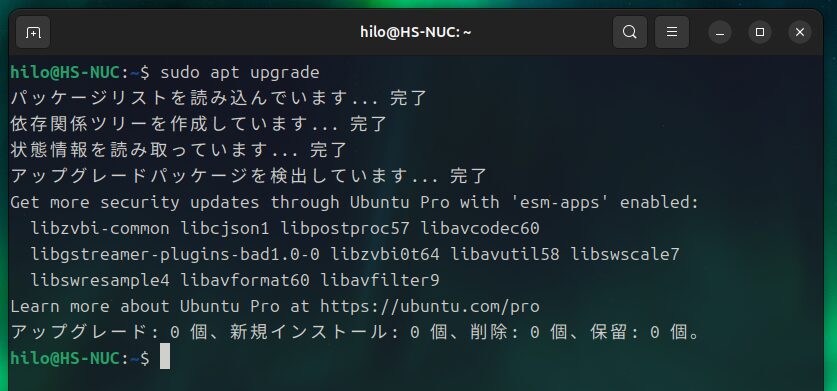 何かをインストールする前にはUbuntuに既に入っているソフトや機能を更新(アップグレード)したほうが良いです。