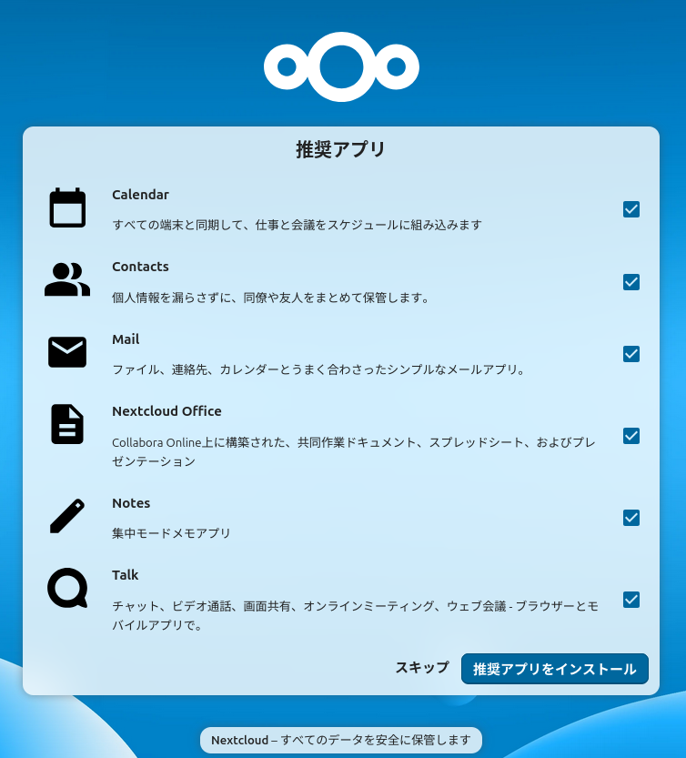 動き始めたNextcloudをブラウザから設定