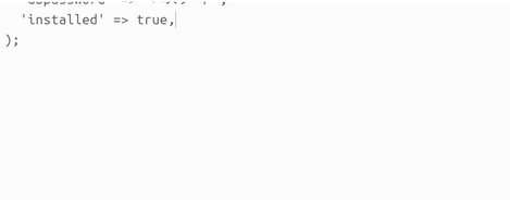 開いた設定ファイルの一番最後の ); の直前に以下を書きます。これでRedisとキャッシュ機能が有効になります。